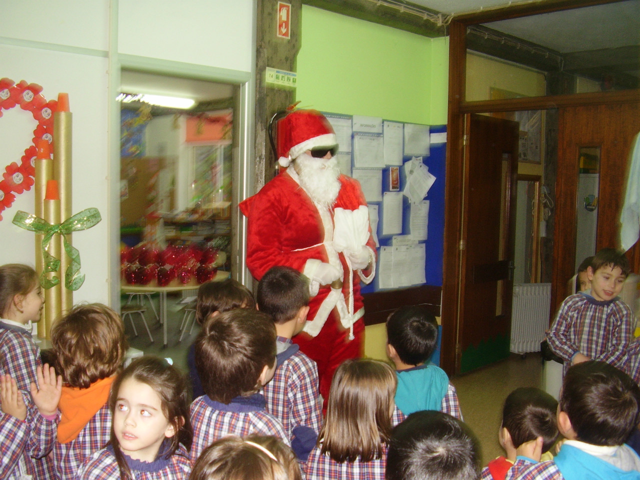 No dia 14 de Dezembro de 2012, depois do almoço, com toda a comunidade educativa na cantina da escola recebemos a vistia do Pai Natal, que nos ofereceu um livrinho e um saquinho com pais natais de chocolate!!! Que bom...